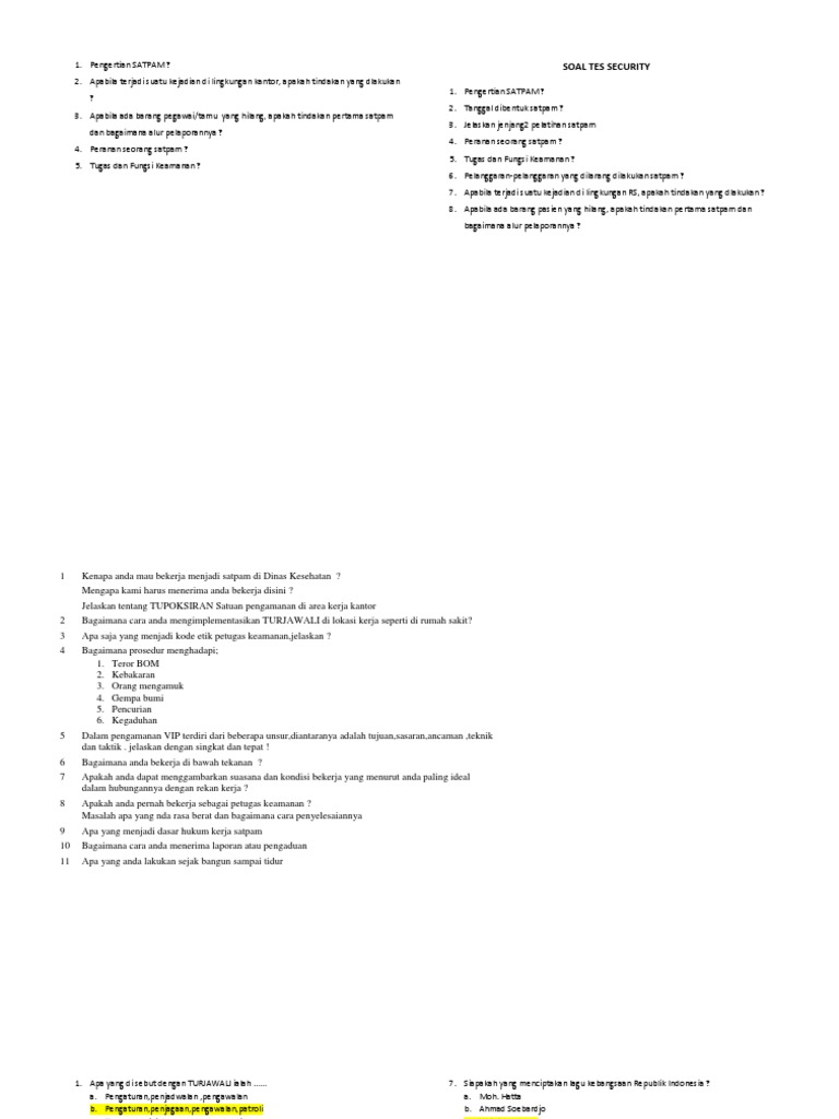 untuk "Tupoksiran Dan Turjawali : Soal Tes Satpam - Seperti fitur database & manajemen personil, record training."